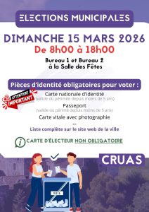 Pour toute demande relatives aux élections vous pouvez contacter le service Population : population@cruas.fr